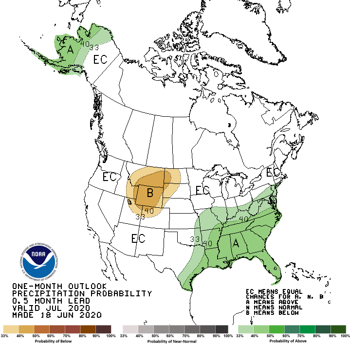 June was an above normal month for precipitation with 4.80 inches of rainfall recorded, which was 0.94 inches above normal. The maximum rainfall in a single day was 1.56 inches recorded on June 4. There were 8 days of rain >.01 in, 7 >.10 in and 1 >1 in.