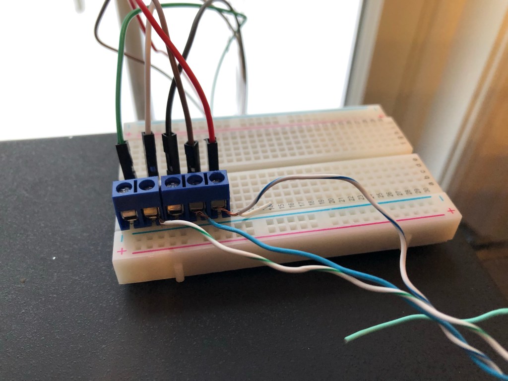 Breadboard for connecting a CAT6 twisted-pair cable to the TNC