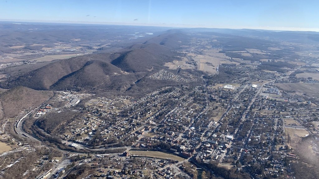 This is the town of Bellefonte, PA, looking NE. The image was taken from 3000’ MSL by a local pilot. Bellefonte is the Centre County seat.