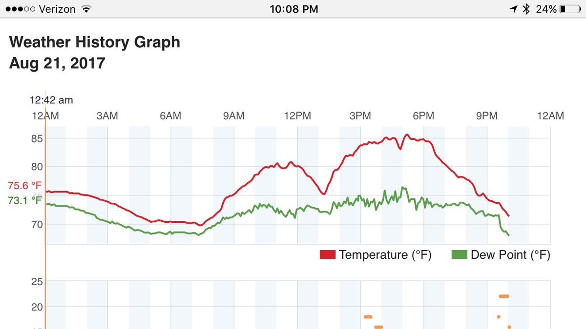 The local Mourning Doves started cooing as the clock ran down to totality. Suddenly, there was a opening in the cloud cover, and with that, totality occurred. There were cheers and hoots when we were rewarded with an awesome sight.