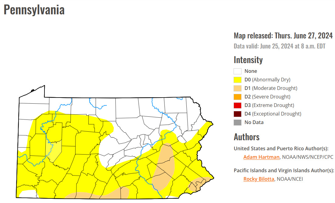 As the above map indicates, southwestern Centre County is experiencing a moderate drought. The criteria for drought classification appears below.